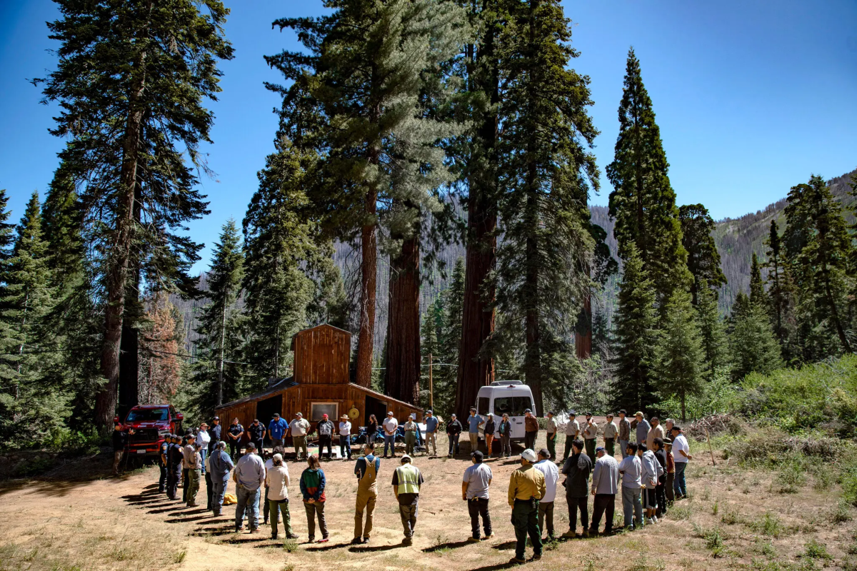 After songs, prayers and pronouncements, several dozen members of the Tule River, North Fork Mono and Tübatulabal Tribes and others kindled branches into crackling fires. Thick clouds of blue smoke billowed through the canopy of the giant sequoia forest. A plate of food from a barbecue was offered to the flames.